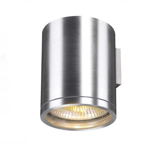 Die puristische Wandleuchte der ROX Serie besteht aus gebürsteten Aluminium und Glas welches das Leuchtmittel abdeckt.