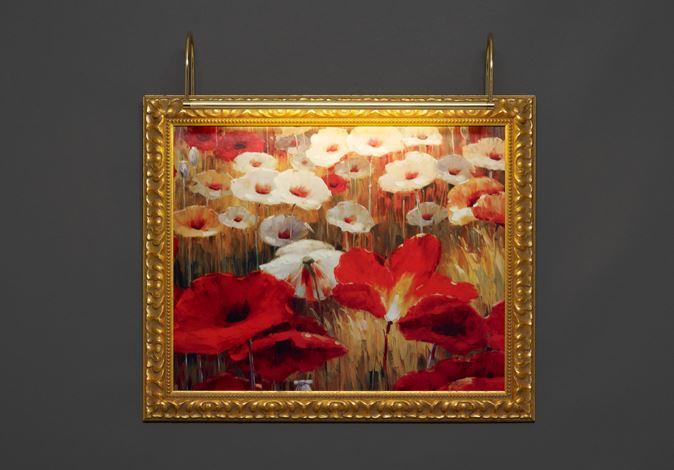 CLARUS LED-Bilderleuchte in 24ct Gold und Gold matt mit einer Länge von 26 cm. Hier mit dem Bügel-Typ 17. Dieser Bügel ist ideal für Bilder bis 60 cm Höhe.