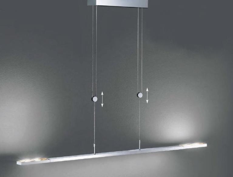 Höhenverstellbare, dimmbare LED-Pendelleuchte mit moderner LED-Technik in 2 Längen und 3 verschiedenen Oberflächen.