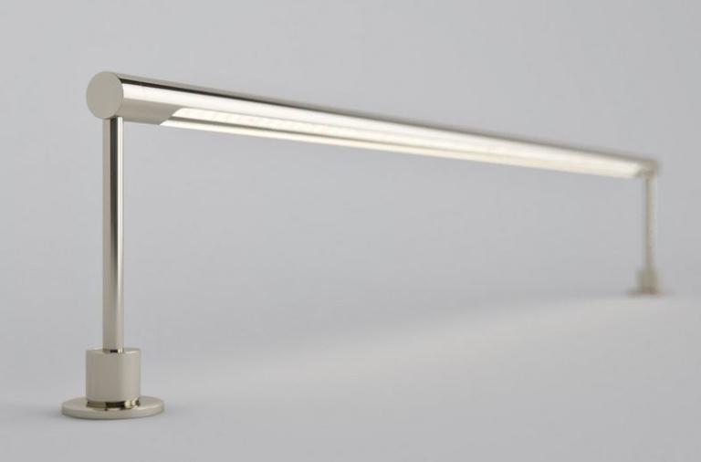 Lieferumfang: Leuchte komplett mit LED-Leuchtmittel, Dimmfähiges Vorschaltgerät und Befestigungsrosette zur Montage an der Tischplatte oder an der Wand.