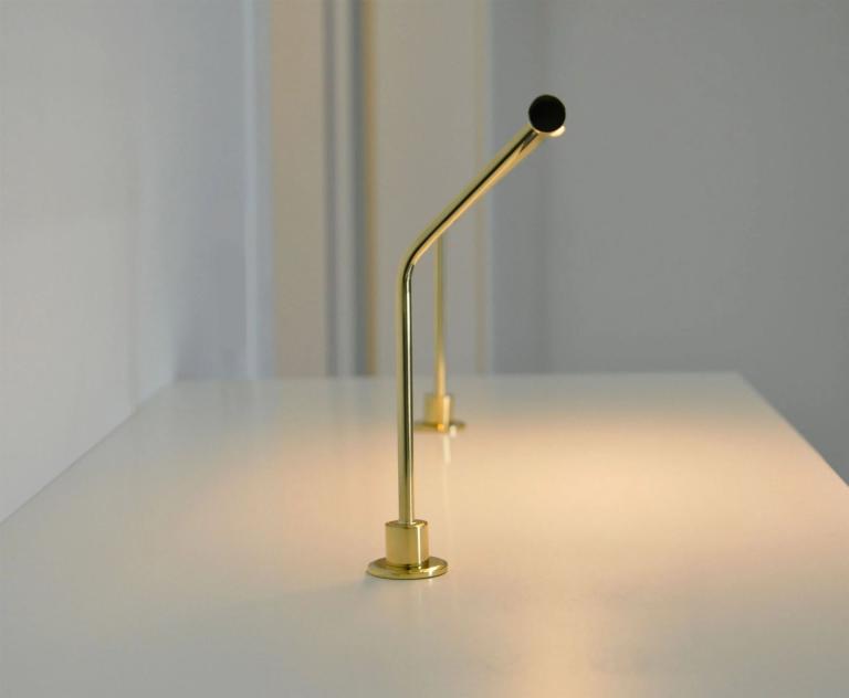 Ductus LED-Pultleuchte 460 mm in Messing glanz mit LED Warmton und Bügel-Typ 18.